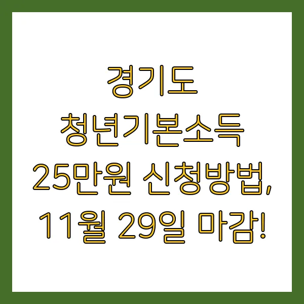 경기도 청년이라면 주목! ✨ 만 24세 청년을 위한 경기도 청년기본소득 신청이 11월 29일 마감됩니다! 분기별 25만원, 최대 연 100만원 혜택! 지금 바로 신청하세요! 자격 요건, 신청 방법, FAQ까지 모두 담았습니다. 놓치면 후회할 꿀팁 대방출!🎁 청년 여러분의 꿈을 응원합니다!