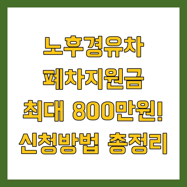 미세먼지 걱정, 이제 그만! 숨 막히는 도시, 맑은 공기를 되찾을 시간입니다! 노후 경유차 폐차하고 최대 800만원 지원금 받으세요! 폐차 지원금 신청 방법부터 추가 지원 혜택까지, 2024년 최신 정보를 여기서 모두 확인하세요! 지원 대상, 신청 절차, FAQ까지 완벽 정리! 지금 바로 깨끗한 공기를 위한 첫걸음을 내딛으세요!