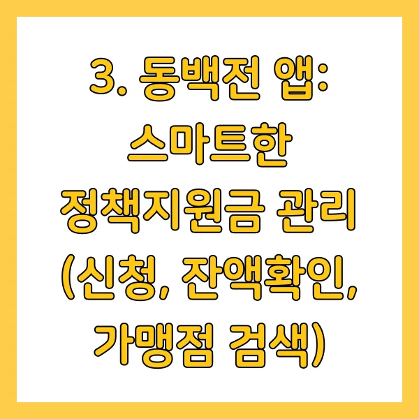 3. 동백전 앱: 스마트한 정책지원금 관리 (신청, 잔액확인, 가맹점 검색)