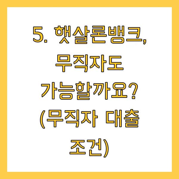 5. 햇살론뱅크, 무직자도 가능할까요? (무직자 대출 조건)