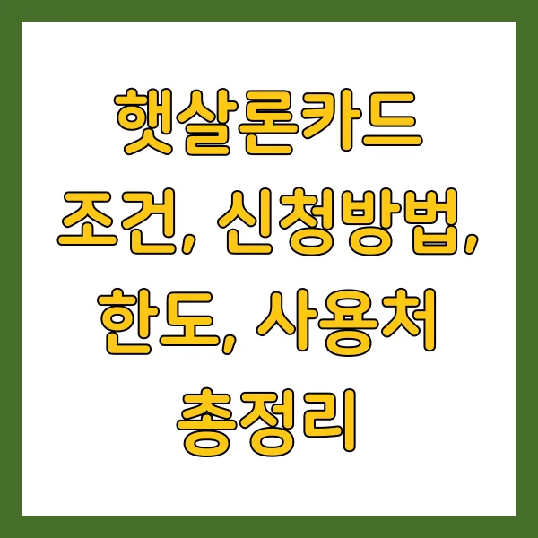 저신용·저소득층의 경제적 자립을 위한 든든한 지원군, 햇살론카드! 2024년 최신 정보를 바탕으로 햇살론카드의 자격 조건, 신청 방법, 한도, 사용처, 그리고 놓치지 말아야 할 주의사항까지 꼼꼼하게 정리했습니다. 햇살론카드, 나에게 희망의 디딤돌이 될 수 있을까요? 지금 바로 확인해보세요! (핵심 키워드: 햇살론카드, 서브 키워드: 조건, 신청방법, 한도, 사용처, 금리, 서민금융진흥원)