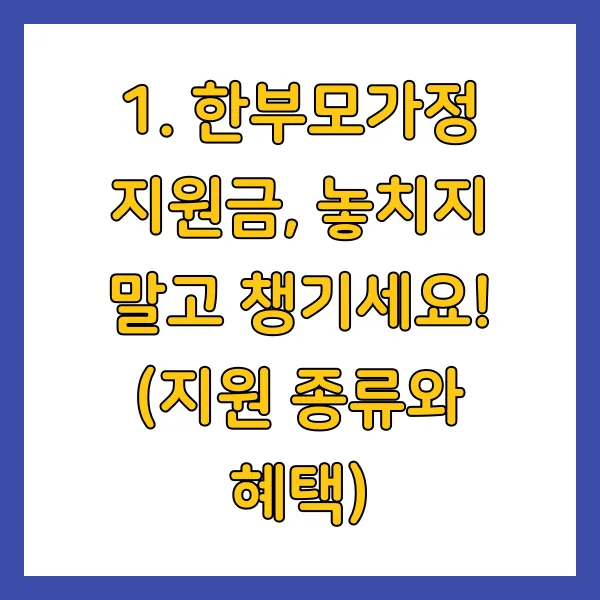 1. 한부모가정 지원금, 놓치지 말고 챙기세요! (지원 종류와 혜택)